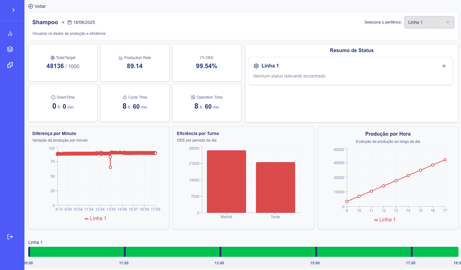 Tenha acesso instantâneo à performance de cada linha, máquina e turno. Identifique falhas, atrasos e paradas antes que virem gargalos.